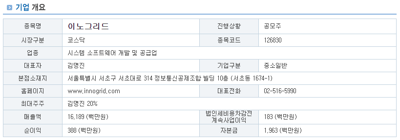 | 기업명(종목명) | 이노그리드 |