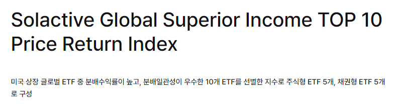 | 기초지수 | Solactive Global Superior Income TOP 10 Price Return Index |