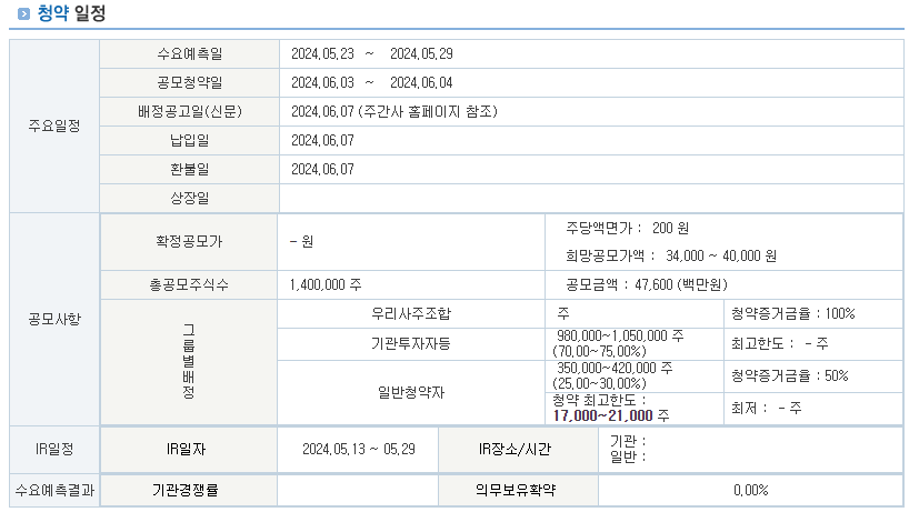 | 공모청약일 | 2024.06.03 - 2024.06.04 |