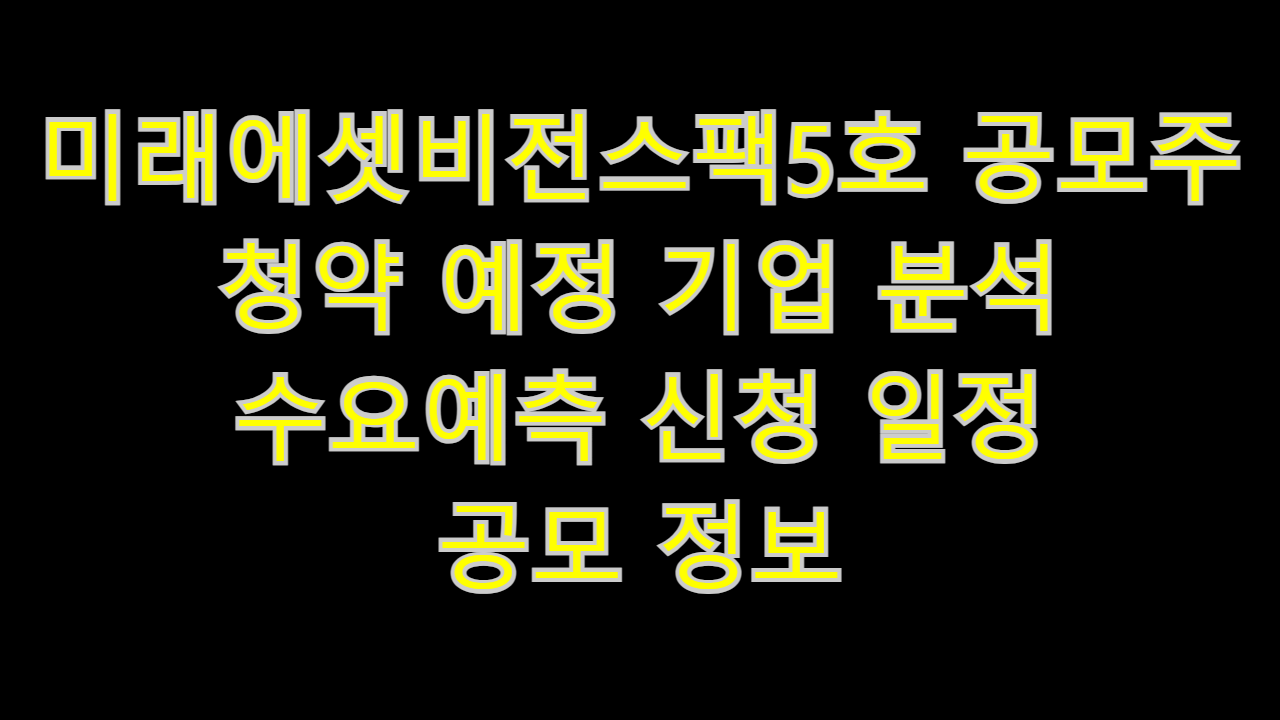 미래에셋비전스팩5호의 공모주 청약이 다가오면서 투자자들의 관심이 점점 높아지고 있습니다. 국내 스팩 시장에 대한 기대감이 커지는 가운데, 미래에셋증권이 이끄는 이번 공모에도 많은 이목이 쏠리는 상황인데요.