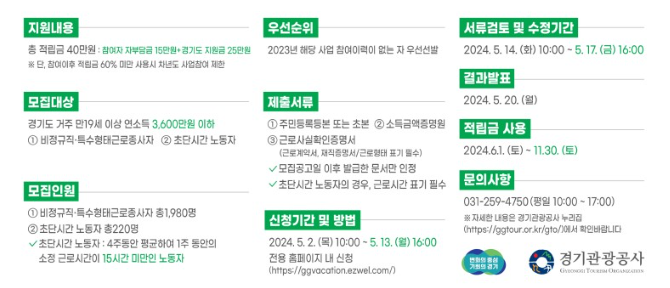 2024 경기도 노동자 휴가비 지원 사업 신청 대상 및 방법