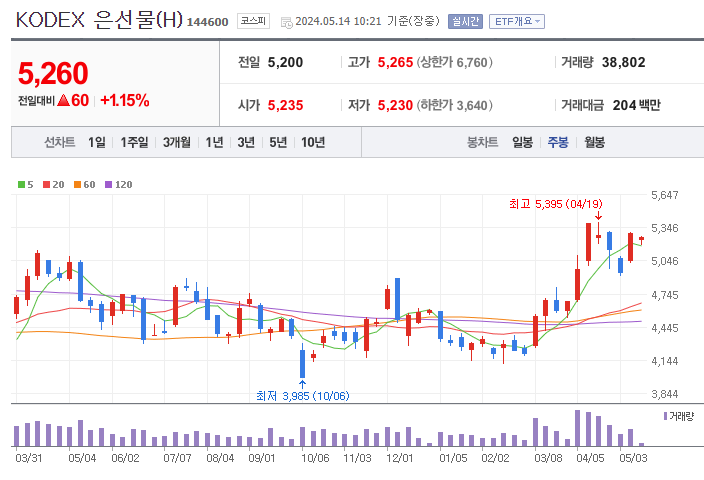 KODEX 은선물(H)은 인플레이션 헤지와 산업 수요 증가라는 측면에서 투자 매력을 갖춘 원자재 ETF입니다. 환헤지로 환율 변수를 제거한 점 또한 투자 포인트로 꼽힙니다.