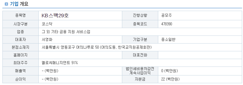 KB스팩29호 스팩주 청약일 및 상장일 일정