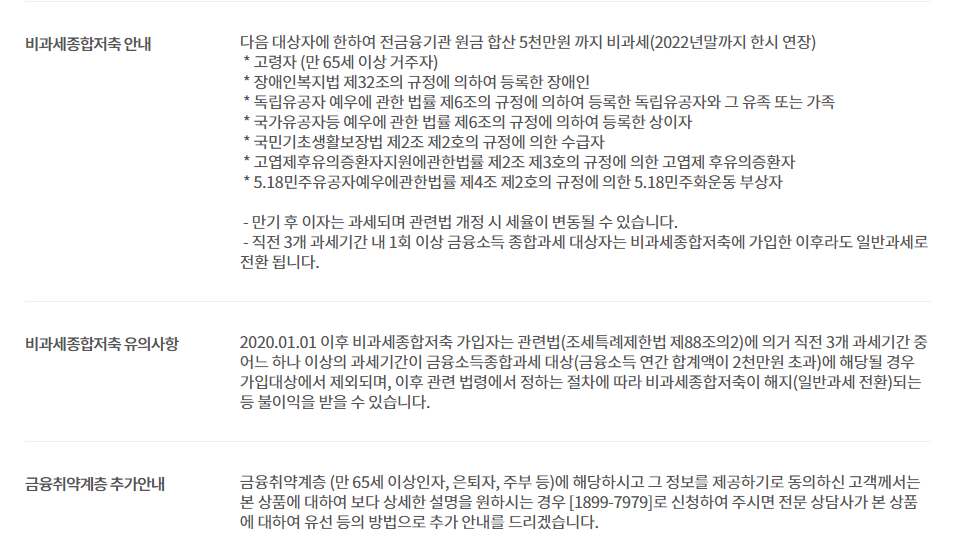 당연히 비과세저축되구요, 가능하신 분들은 꼭 챙기셔서 가입하시기 바랍니다. 참고로 최고금리 2.0%는 당연히 세전금리입니다.