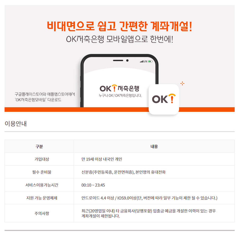 아이폰, 안드로이드폰 어플 받으셔서 가입하시면 되고 준비물은 신분증만 있으면 됩니다. 단, 최근 20영업일 이내에 통장 개설한 이력있으시면 안되는건 아실 겁니다. 조금 기다렸다가 가입을 하시면 됩니다.