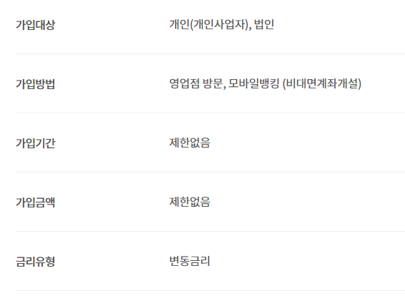 가입방법은 영업점 방문도 가능하지만 누가 요즘 영업점을 방문하나요. 비대면계좌개설로 하시면 됩니다. 금리가 변동금리라는 것이 조금은 찝찝하지만 변동금리가 아닌 고정금리인 곳이 없죠.