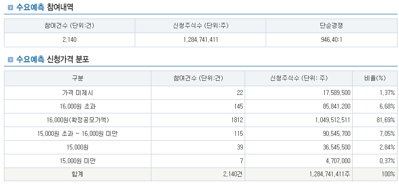 | 기관투자자 경쟁률 | 946.40 : 1 |