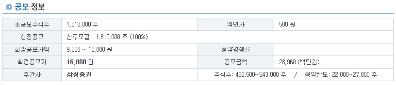| 공모가 | 16,000원 |