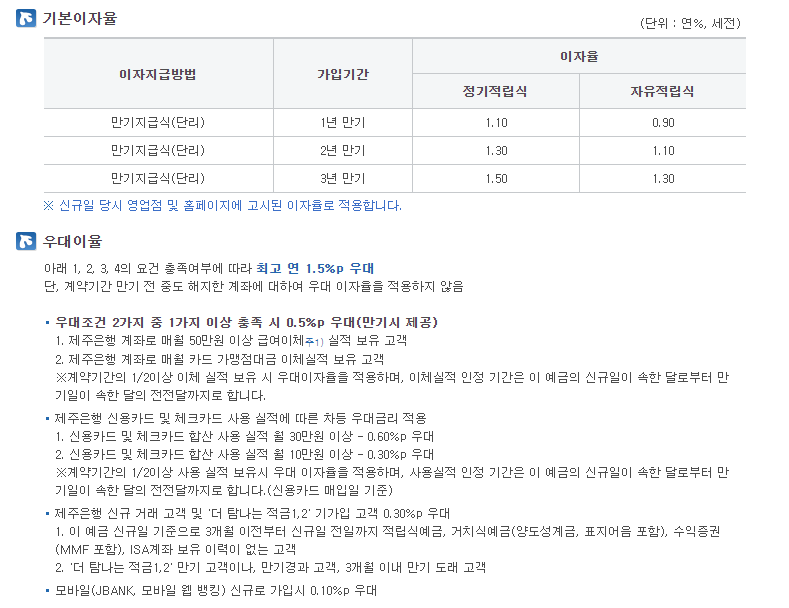 역시나 제주은행을 급여이체 은행으로 쓰고 체크카드 월 30만원 이상 써야 합니다. 그나마 체크카드라서 조금 낫습니다. 그래도 우대금리까지 받으려면 아무래도 제주도민들에게 더 유리한 것 같네요.