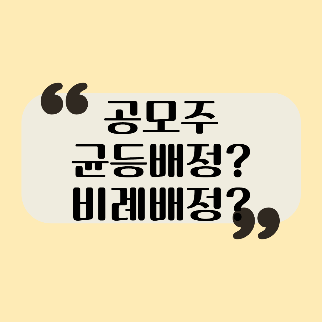 균등배정과 비례배정 차이는 말 그대로 모든 청약을 넣는 사람이 균등하게 받느냐, 비례해서 받느냐의 차이입니다. 요즘 대부분의 공모주는 이제 균등배정과 비례배정을 반반씩 배정하기 때문에 사실 내가 균등을 선택하거나 비례를 선택하거나 할 수는 없습니다.