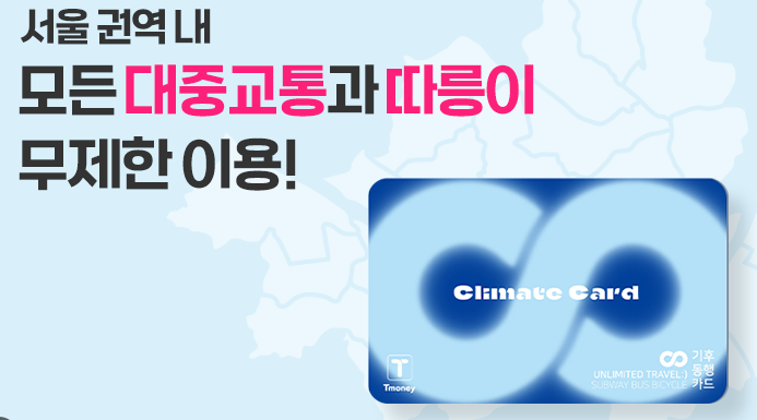 | 기후동행카드의 정의 | 일정 금액 충전 시 30일간 서울 지역 대중교통과 따릉이 무제한 이용 가능한 정기권 형태의 카드 |