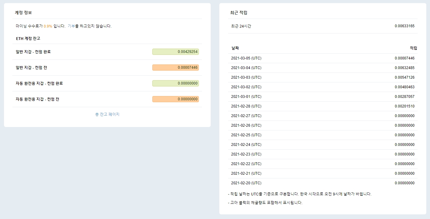 저는 얼마전부터 뒤늦게나마 이더리움 채굴을 시작하였습니다. 뭐 그래픽카드 가격 장난 아니고, 이더리움 시세도 왔다갔다하고 전기세 폭탄에 지금 하면 늦은 것이다라는 의견도 있었습니다만.