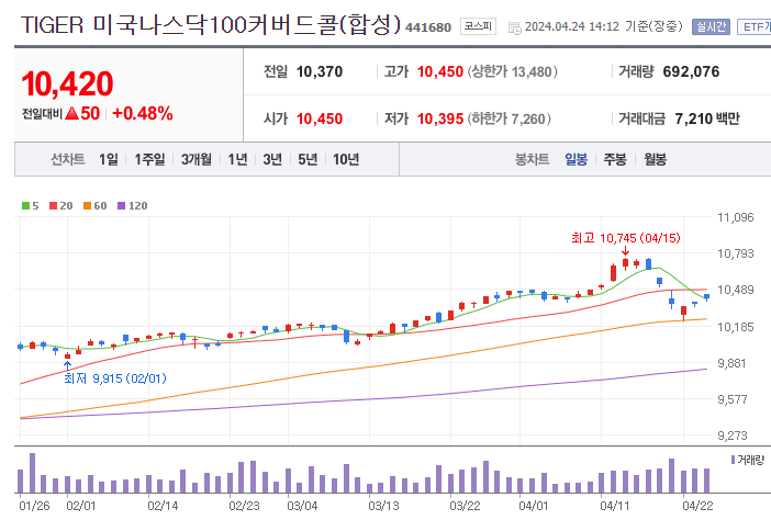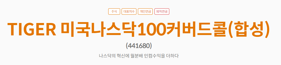 - 상품명: TIGER 미국나스닥100커버드콜(합성)