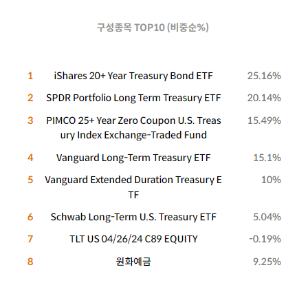 편입 종목을 보면 만기 20년 이상 미국 국채 ETF가 주를 이루고 있음을 알 수 있습니다.