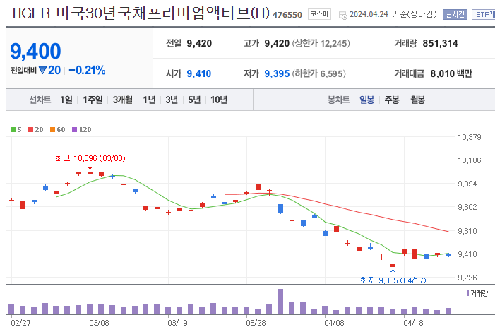 | 상품명 | TIGER 미국30년국채프리미엄액티브(H) |