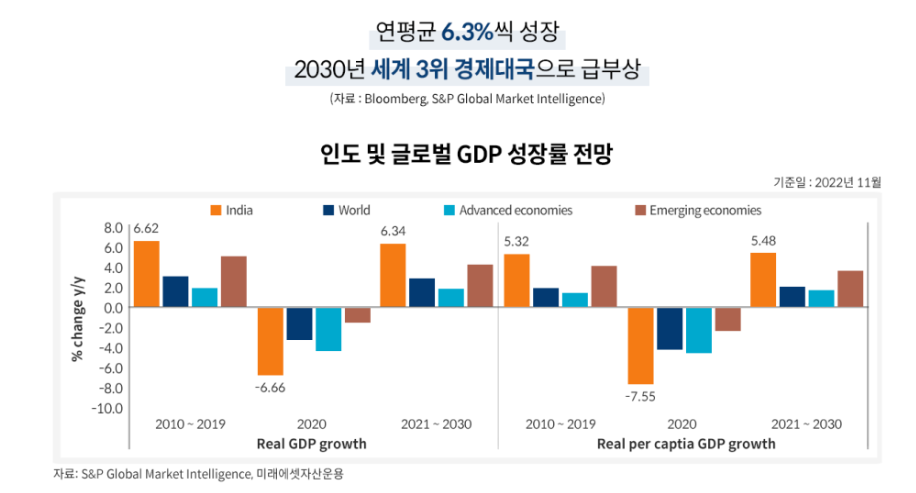 글로벌 경기침체 우려가 높아지고 있지만, 신흥국 중에서도 인도 증시가 투자자들의 주목을 받고 있습니다. 세계 인구 1위 국가로 등극한 인도는 젊고 풍부한 노동력, 정부의 기업 친화 정책, 인프라 확충 등을 바탕으로 고성장이 예상되는 곳이기 때문입니다.